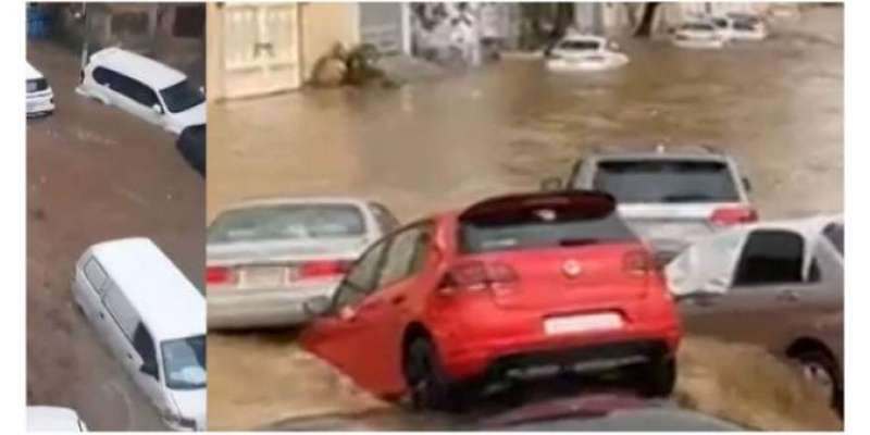 سعودی عرب کے کئی شہر طوفانی بارشوں کی زد میں ،مکہ مکرمہ میں سیلابی ریلے گاڑیاں بہا لے گئے
