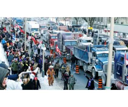 کینیڈا میں ہزاروں ٹرک ڈرائیوڑ کورونا ویکسین لازمی قرار دیے جانے کیخلاف سڑکوں پر نکل آئے
